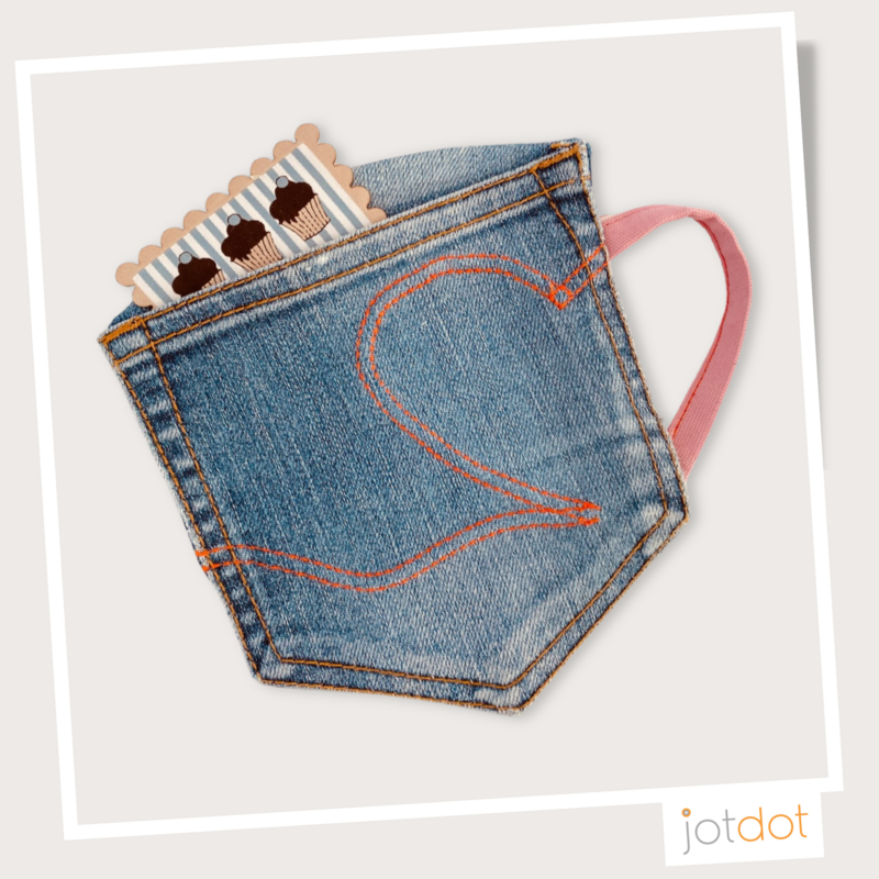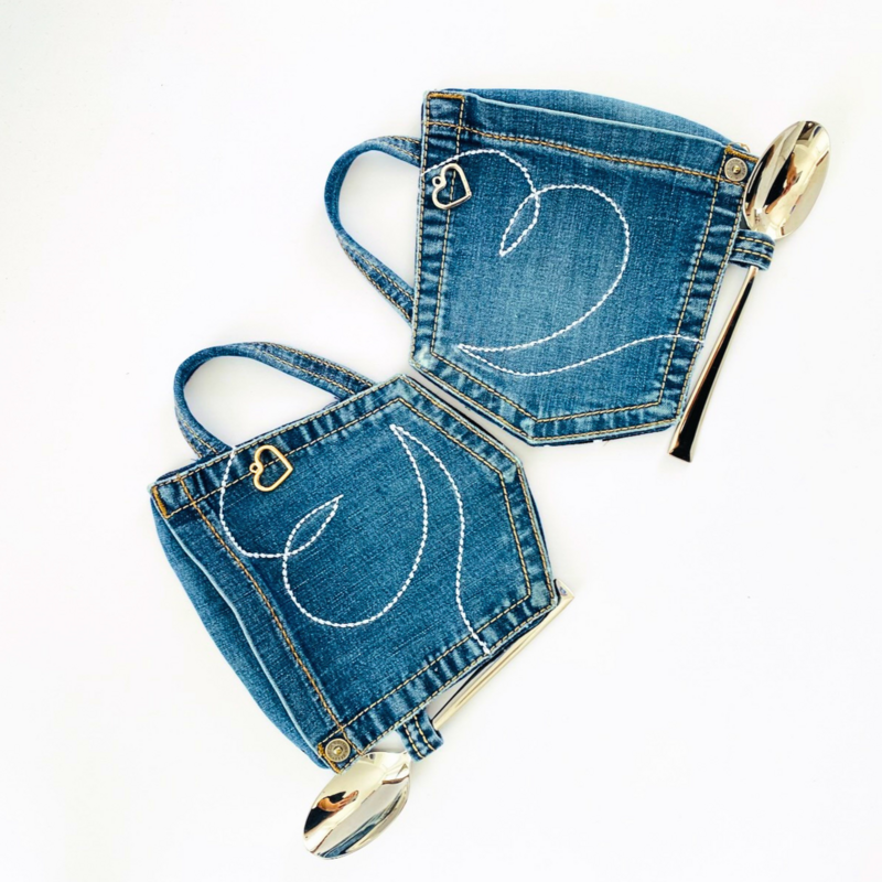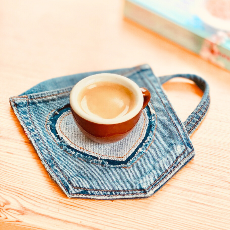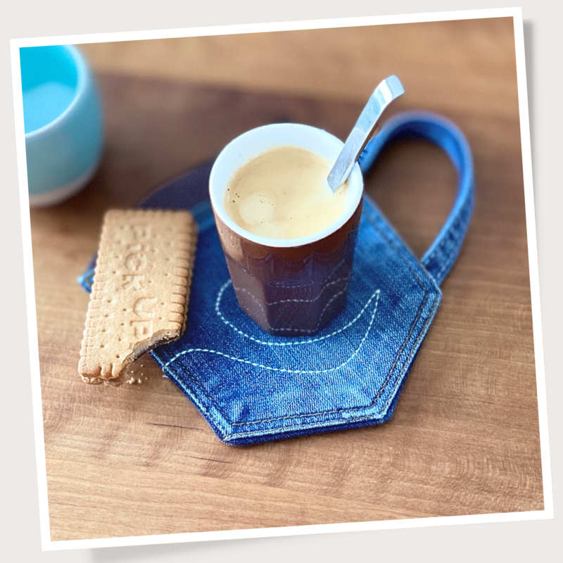 Verwandle eine Jeans-Tasche in einen Tassen-Untersetzer in deiner Lieblingsvariante. Applikation oder Herz-Steppungen? Vielleicht ist auch die original Jeans-Tasche der Star. In der Anleitung zeige ich dir alle Details für ein schnelles und perfekt einfaches Jeans Upcycling Projekt.