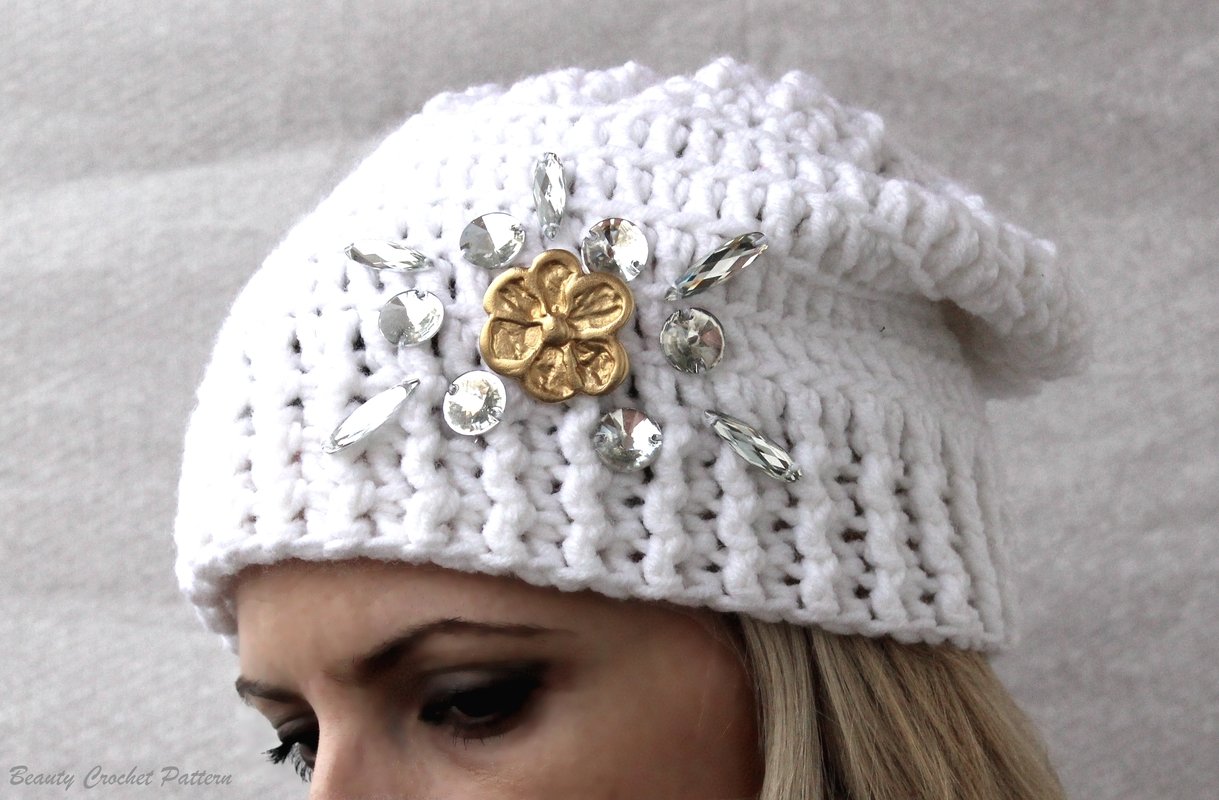 The perfect winter hat - keep warm and make your casual style absolutely glammy! It’s decorated with iron flower button and plastic beads to form a crystal snowflake.