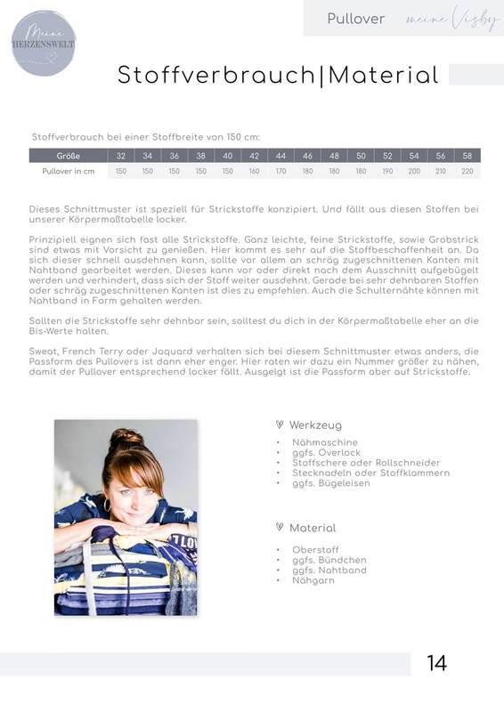 Lass deiner Kreativität freien Lauf und schaffe deinen eigenen Pullover mit dem Schnittmuster „Visby“. Bitte beachte, dass dieses Schnittmuster nur für den privaten Gebrauch und zur Fertigung von Unikaten/Kleinserien verwendet werden darf. Massenproduktion und industrielle Fertigung werden ausdrücklich untersagt, ebenso wie der Weiterverkauf.