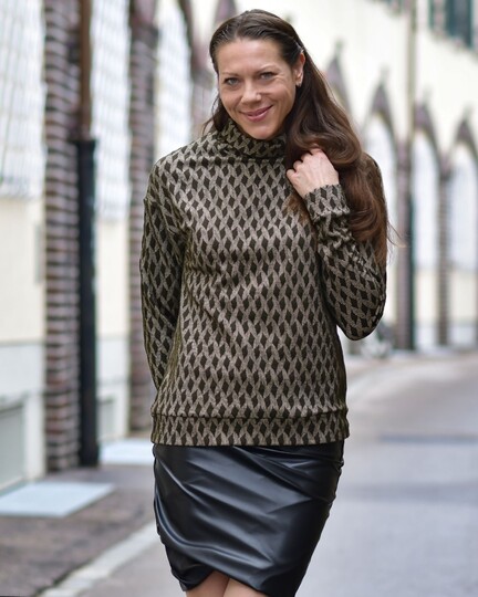„Visby“ ist speziell auf Strickstoffe ausgerichtet, und wenn du dich entscheidest, Sweat, French Terry oder Jaquard zu verwenden, empfehlen wir, eine Nummer größer zu nähen, um den gewünschten Komfort zu gewährleisten.