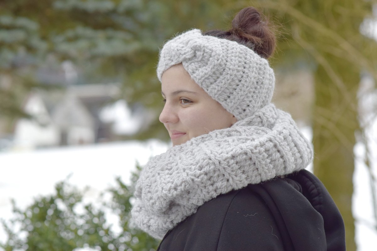 Egal ob im Winter oder zur Übergangszeit, mit diesem Set bist du perfekt und modisch für jedes Wetter ausgerüstet. Der Loop liegt schön locker und leicht am Hals, ohne einzuengen und das breite Knotenstirnband sitzt gut am Kopf und hält Kopf und die Ohren warm. Das Set ist im Handumdrehen gehäkelt und in der Anleitung erkläre ich dir alle Größen und wie du mit jedem Material arbeiten kannst.
