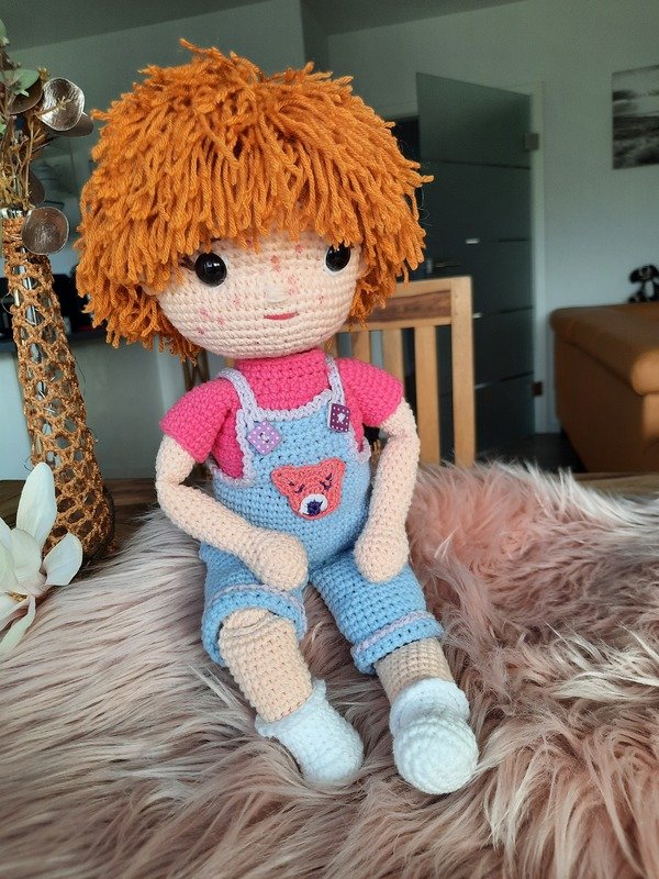 Diese süße Puppe Finny habe ich in liebevoller Handarbeit und mit viel Liebe zum Detail entworfen. Mit Ihrem süßen Gesicht und dem lustigen Outfit versprüht sie ihren Charme. Sie ist perfekt zum Spielen und Liebhaben. Die Hose und das Shirt sind in der Anleitung enthalten. Die Häkelanleitung ist wirklich sehr einfach und Finny ist auch schnell gefertigt.