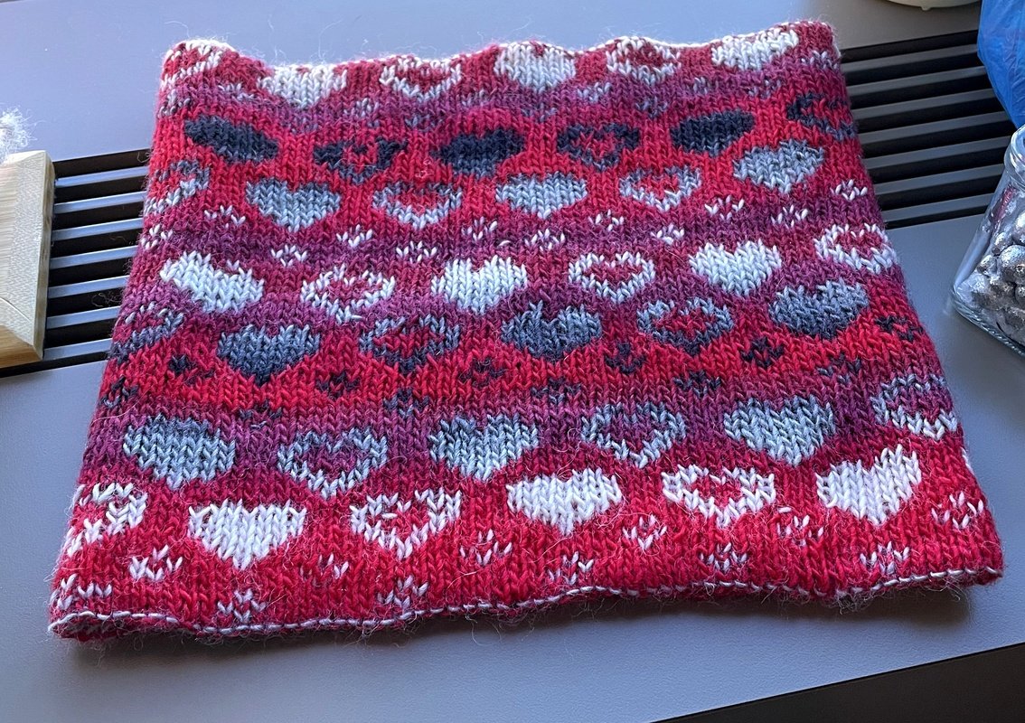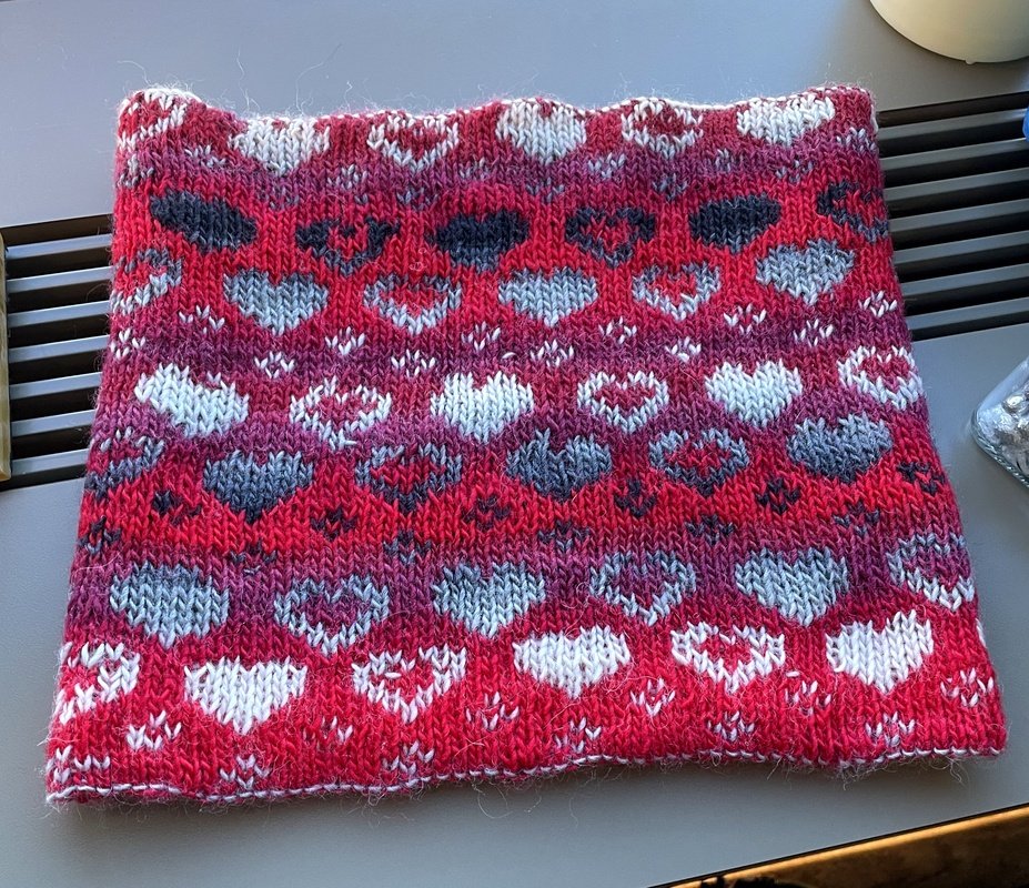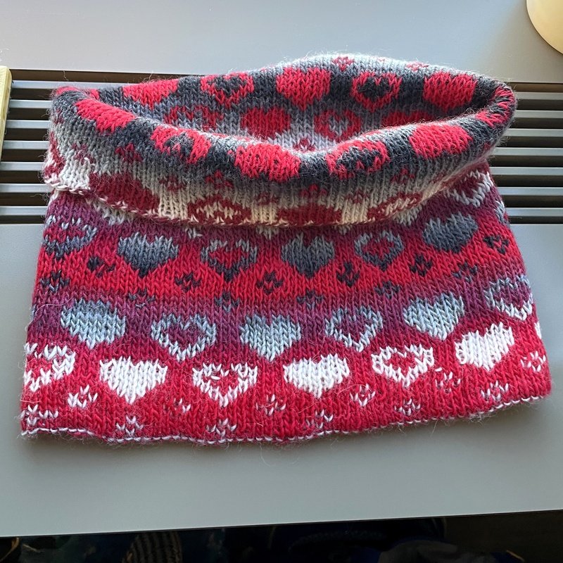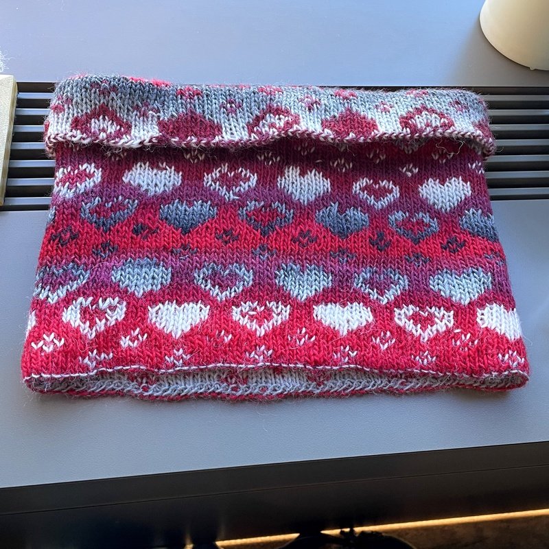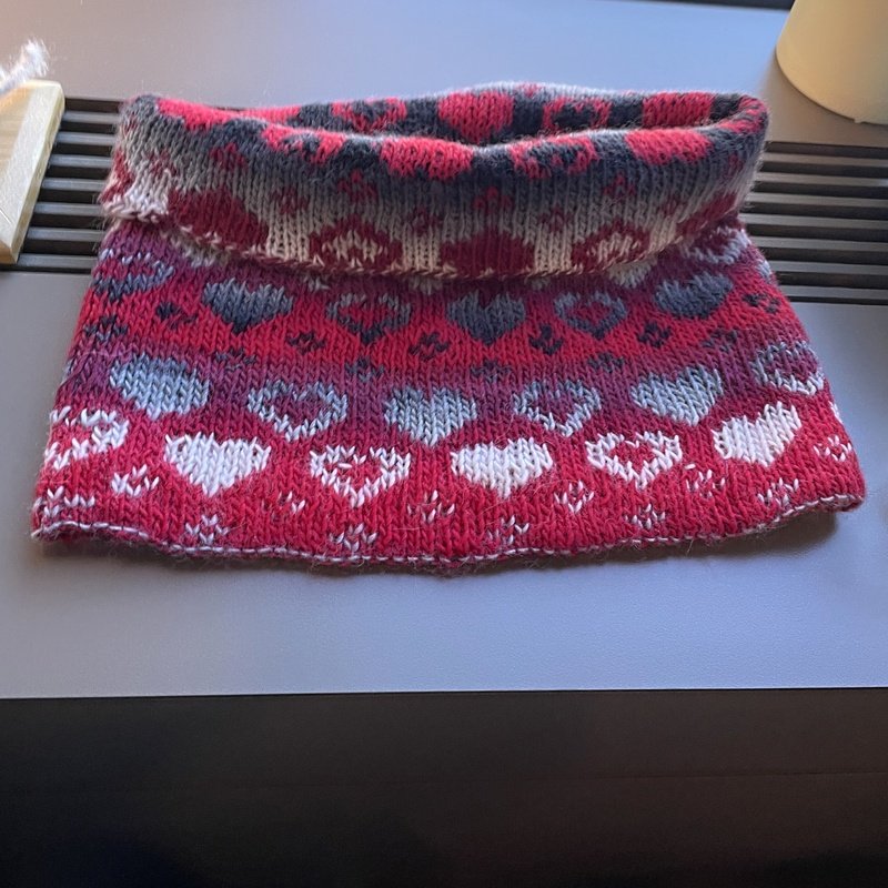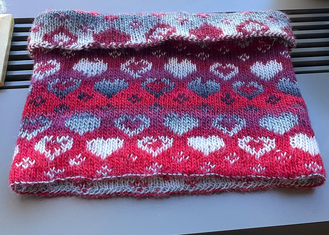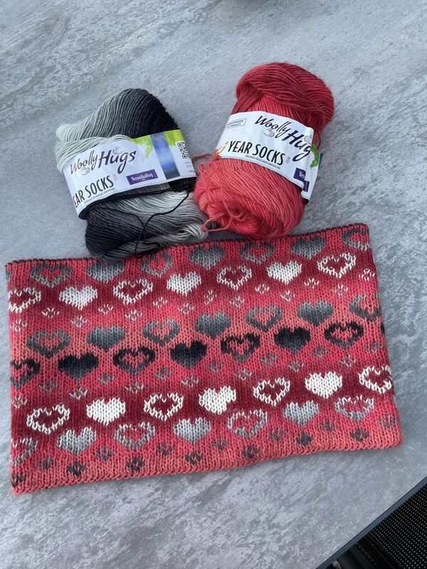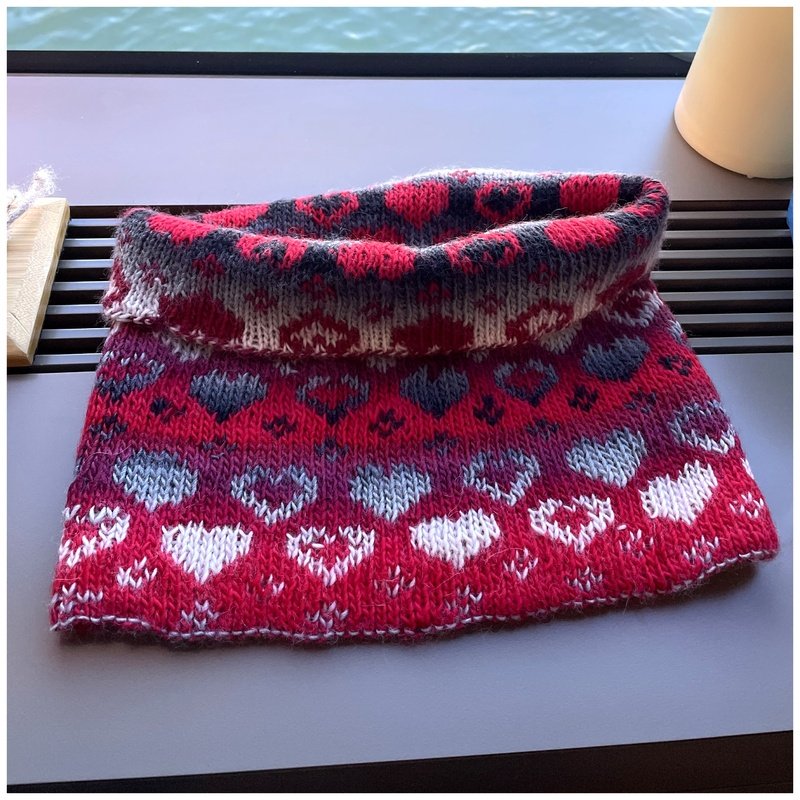 So herzig! Dieser Loop wärmt doppelt....Das Herz und den Hals ...und gleichzeitig ist er auch noch mit Double-Face gestrickt. Das heißt, dass er beim Umschlagen auf der Innenseite ebenfalls Herzchen zeigt.