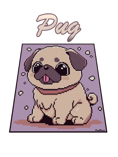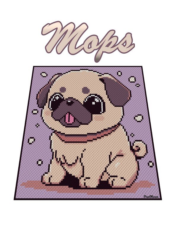 Der Mops ist ein digitales Diagramm, das für verschiedene Häkeltechniken verwendet werden kann, hier speziell für Ecke zu Ecke = C2C oder Mini C2C.