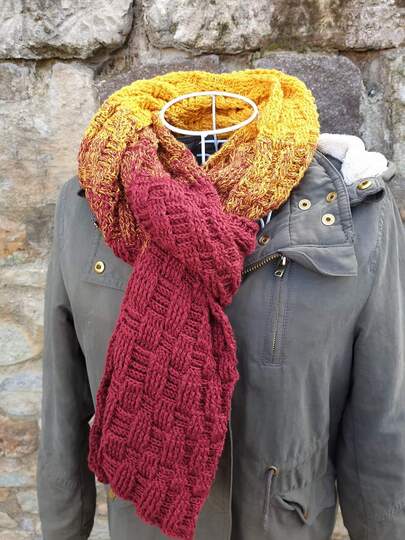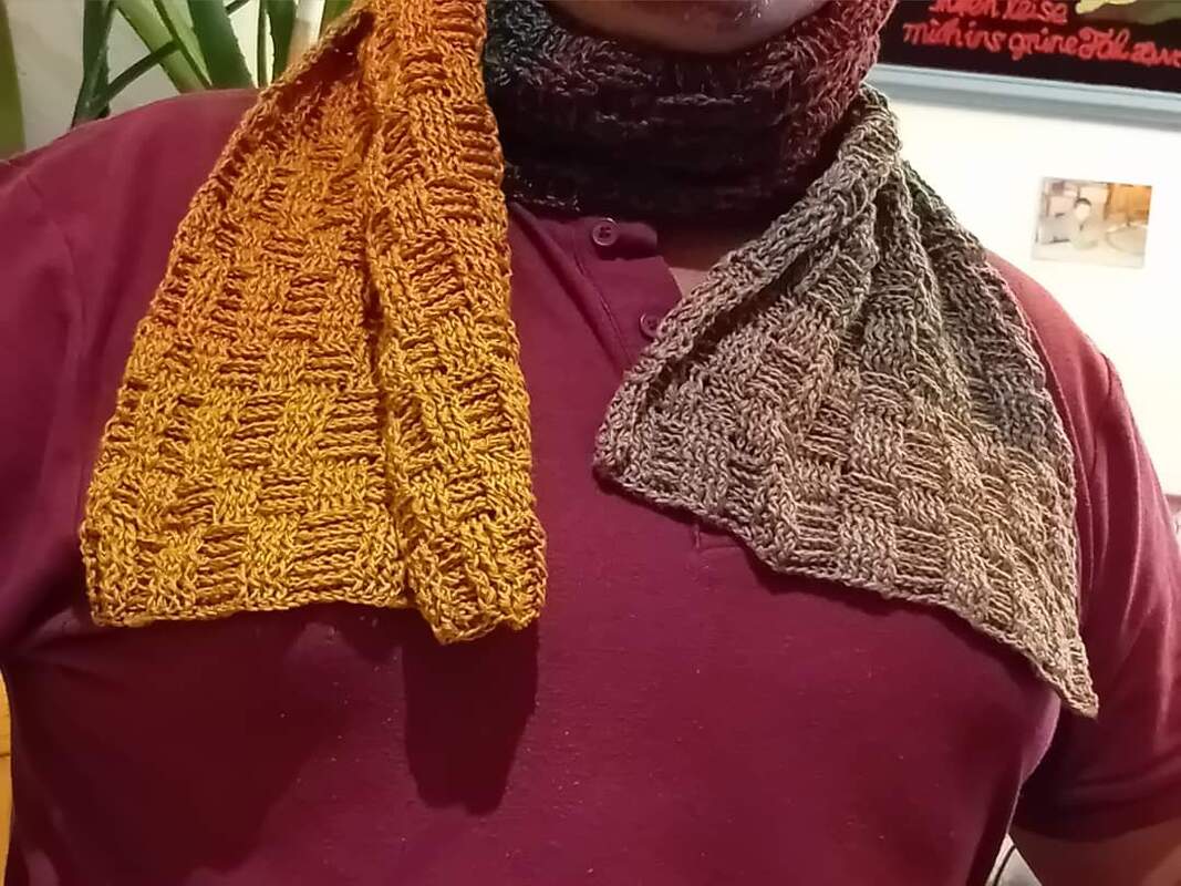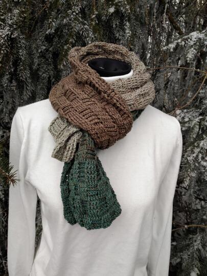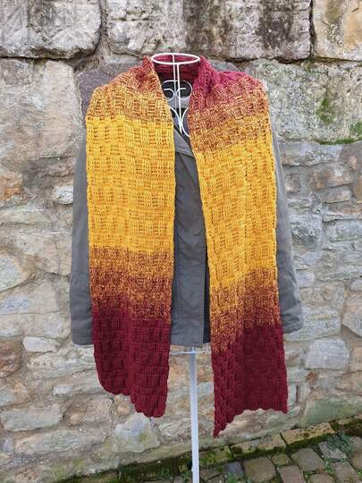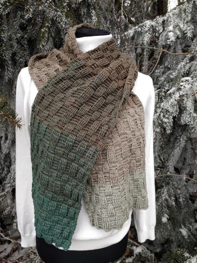 Du bekommst hier die Anleitung für einen gehäkelten Schal mit einem leichten Wiederholungsmuster. Die Länge des Schals kann selbst bestimmt werden.