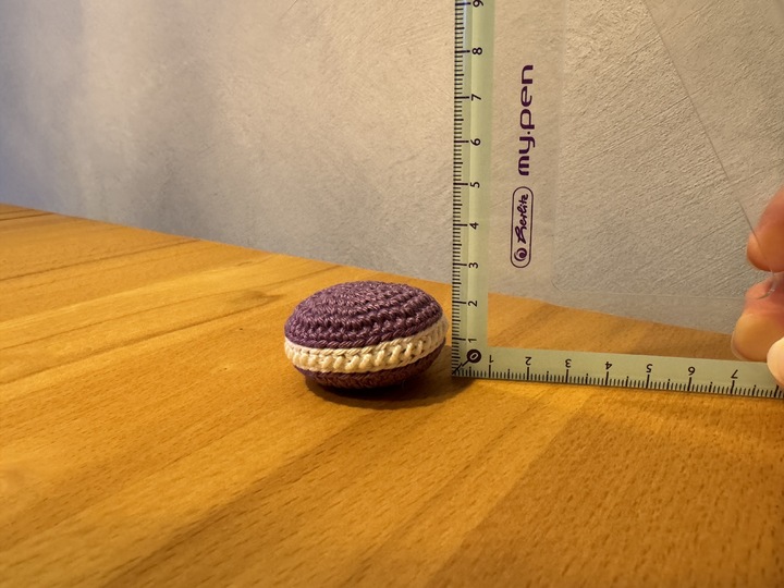 Ich habe von Lana Grossa "Cotone" verwendet und eine 3,0er Nadel von Addi Swing, bzw. für die Macarons eine 2,5er Nadel.
