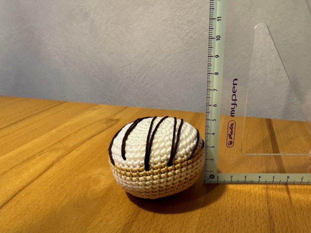 Siehe gern in den Bilder nach, hier liegen die fertige Häkelteile auf dem Maßband um einen Anhalt zu geben.