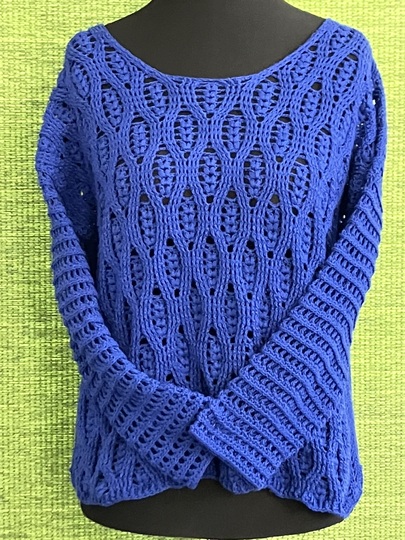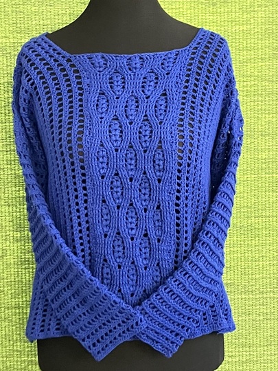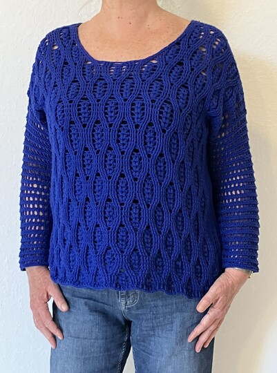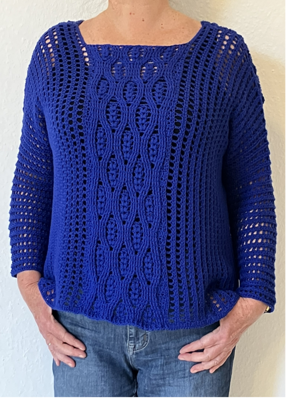 Das Shirt hat praktisch keine Naht, die Seiten werden zusammen gehäkelt und die Ärmel nahtlos angehäkelt.