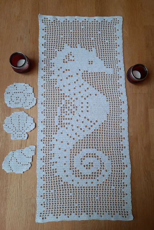 Maße Deckchen hier: Länge ca. 73 cm, Breite ca. 31 cm
