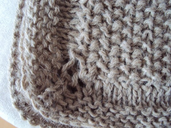 Sie brauchen 300g Alpakawolle, ein Nadelspiel Nr. 4 für die Mütze und eine Rundstricknadel Nr. 5 für die Decke.