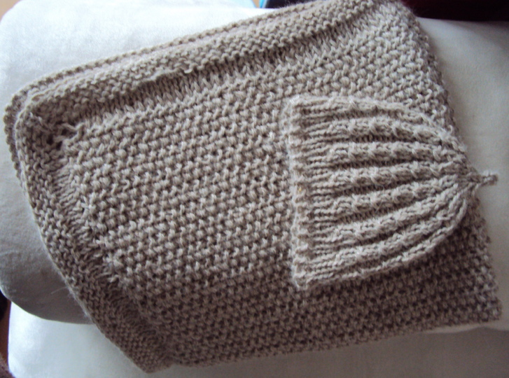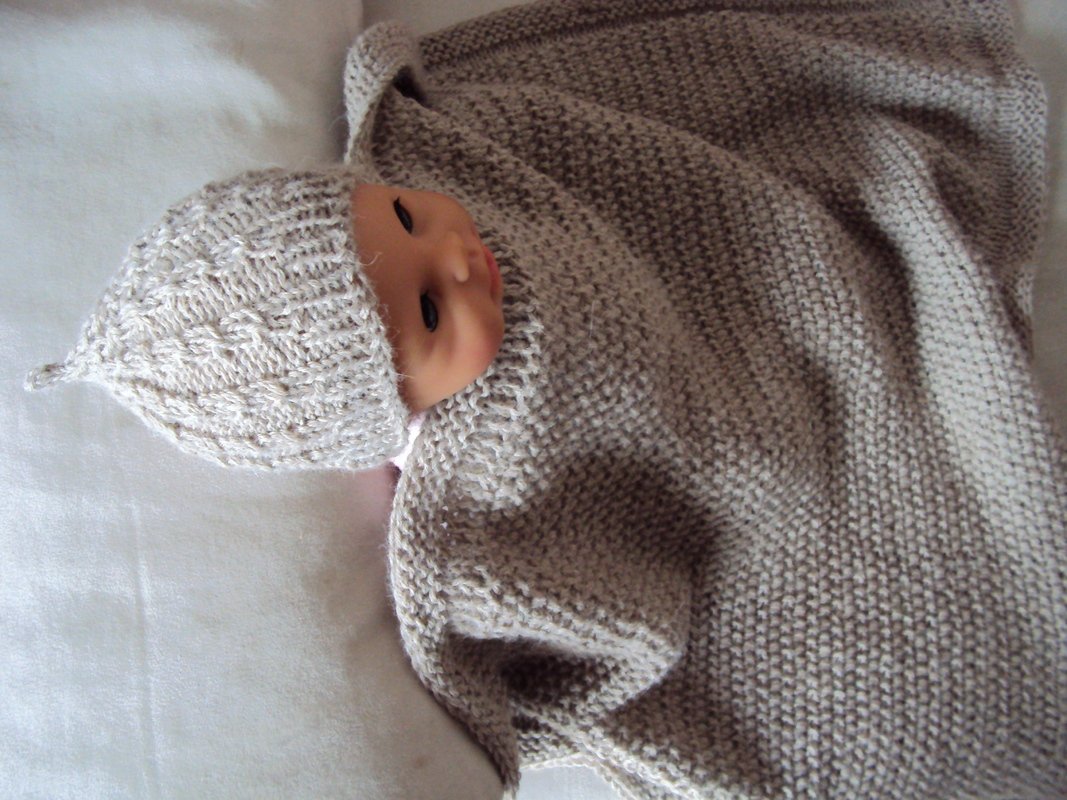 Die Babymütze und die Babydecke werden aus weichem Alpakagarn in einer schönen Naturfarbe gestrickt. Mit doppeltem Faden und Nadeln Nr. 5 geht die Arbeit schnell voran. Die Mütze wird im falschen Zopfmuster, die Decke im Perlmuster gestrickt. Das Set ist ein schönes Geschenk oder für das eigene Baby. Die Decke wird 60/70 cm groß, die Mütze ist in Neugeborenengröße, Kopfumfang ca 35 cm (noch dehnbar).