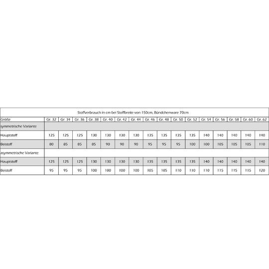 Im Schnittmuster enthalten sind die Damengrößen 32 - 62.