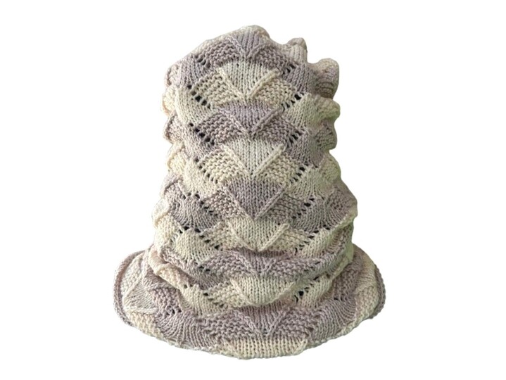 Der Kapuzen-Loop Cozy schützt die Ohren und den Hals. Das Zackenuster ist sehr effektvoll.