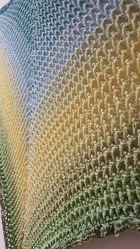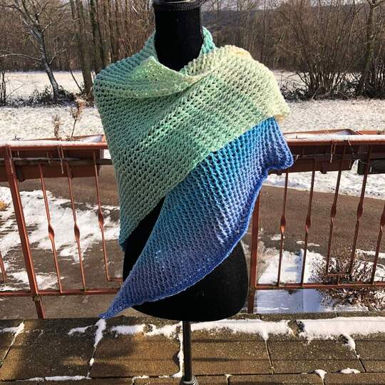 Das Tuch kann ab 1000m mit 3- oder 4 fädigen Bobbel gehäkelt werden.