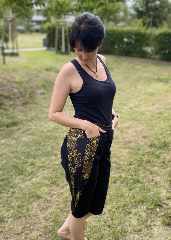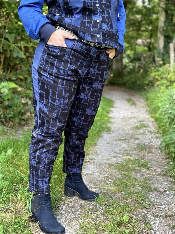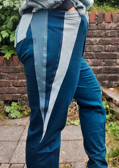 Am besten eignet sich der Schnitt für Hosen- Webware mit bis zu 5% Elasthan