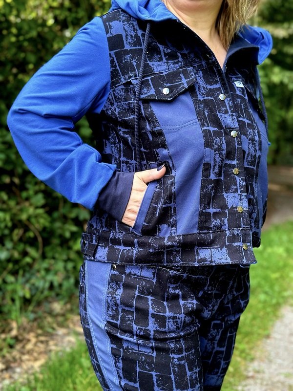 Die Jacke kann gut z.B. mit Stickereien, Borten, Paspeln, Aufnähern, Plotts und Applikationen aufgepimpt werden!