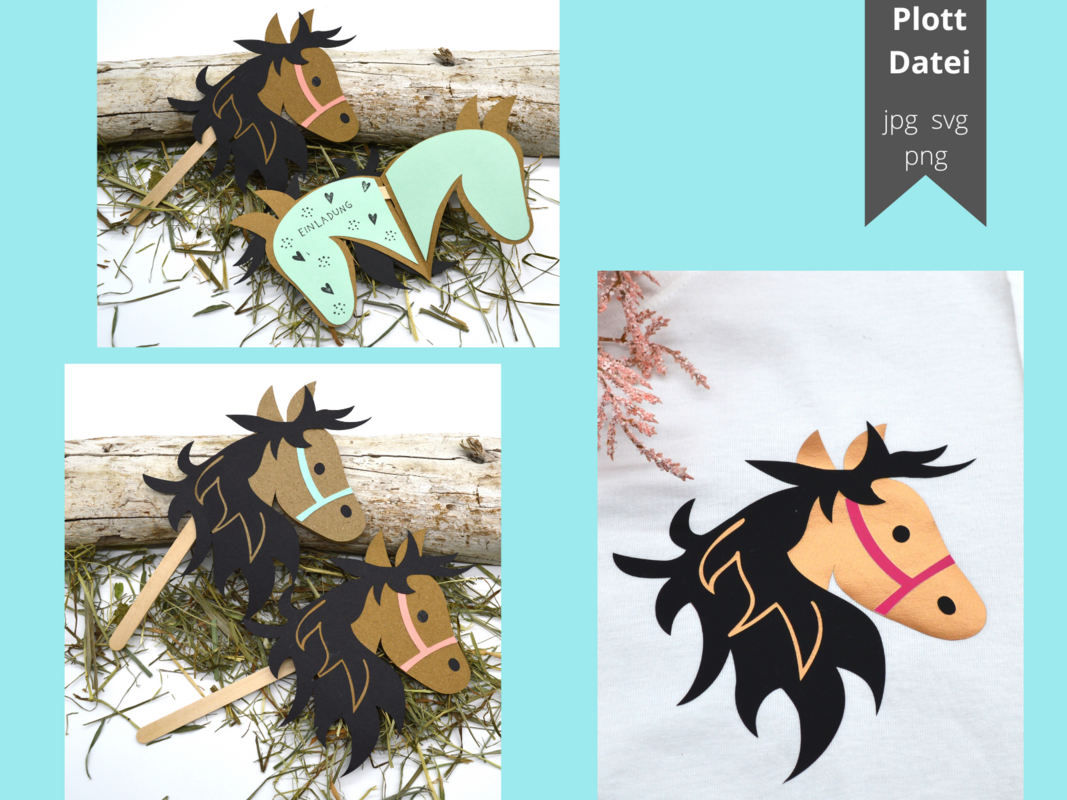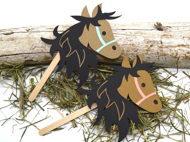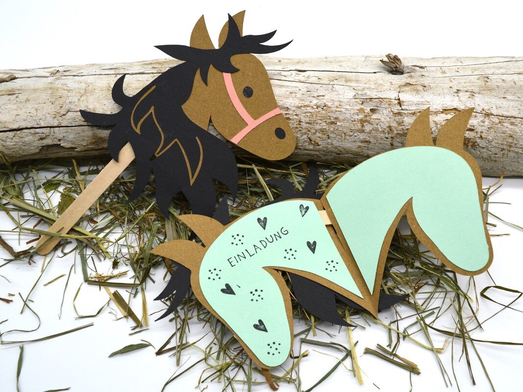 In dem ZIP sind zwei Varianten enthalten: Zum einen könnt ihr eine Einladungskarte basteln. Baut ihr dazu noch einen Holzspieß ein, wird aus dem Pferdekopf zum Aufklappen ganz schnell ein Steckerlpferd!