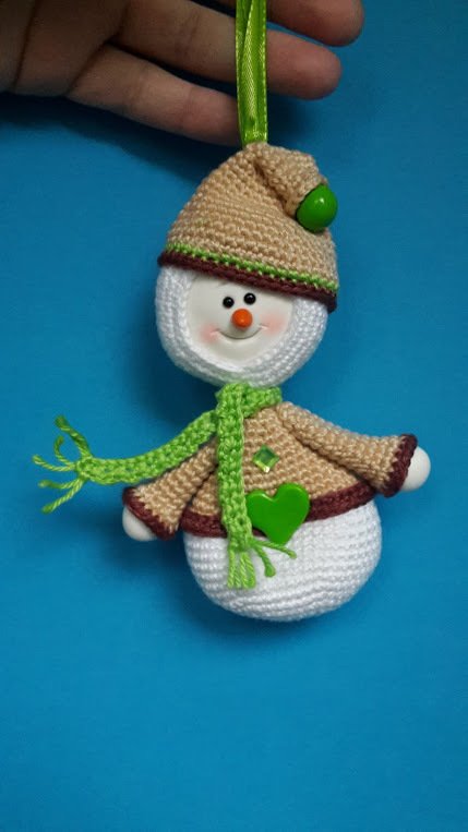 Er ist ein schöner Schneemann, die Farbe kann jeder Individuell selber aussuchen, der Robbi ist ein ganz besonderer Schnee man, da er mit Fimo und häkeln kombiniert wurde.