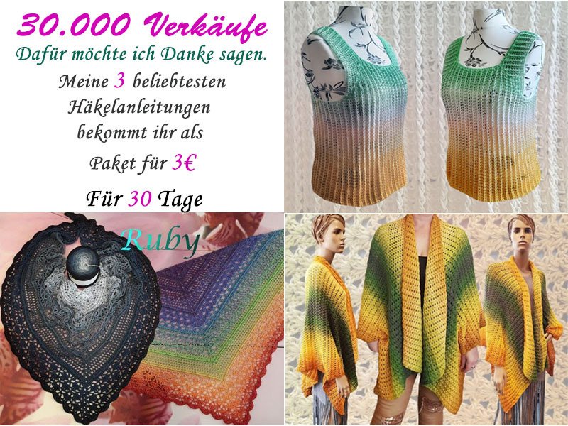 In diesem Paket bekommt ihr 3 meiner beliebtesten Häkelanleitungen für je 1€.