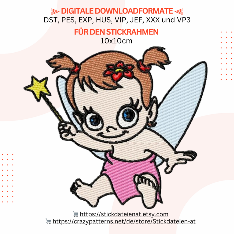 Bringen Sie mit dieser digitalen Stickdatei die zauberhafte Welt der Babyfeen in Ihre Handarbeitsprojekte und lassen Sie Ihre Kreationen im Glanz der Fantasie erstrahlen! ️