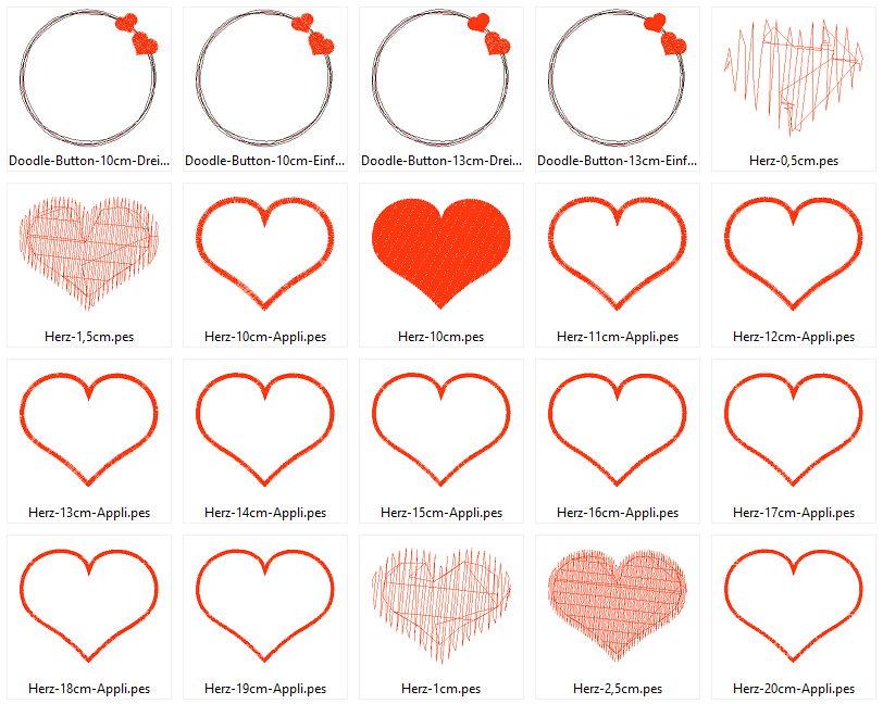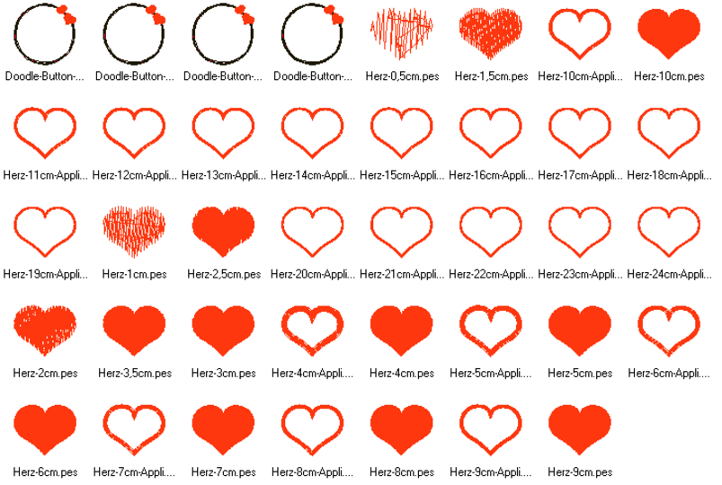 Herz Stickdateien gefüllt für Stoffapplis und als Button
