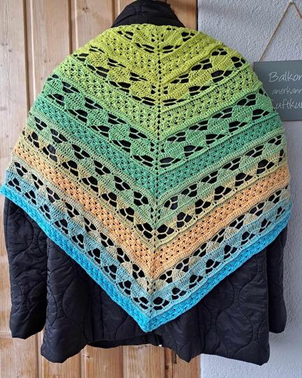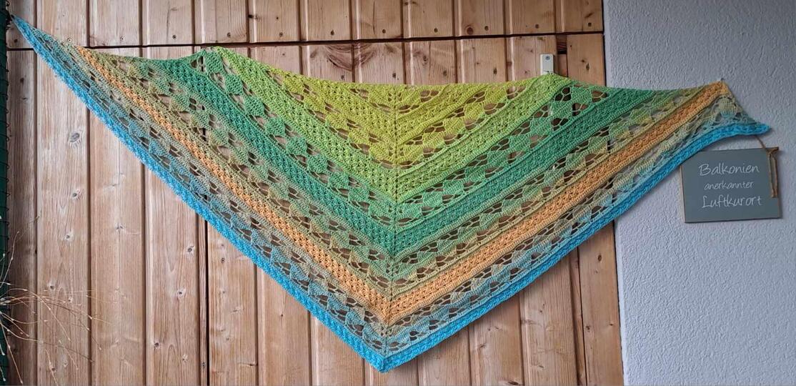 Die Anleitung zum Tuch besteht aus schriftlich ausformulierten Reihen und beinhaltet eine Häkelschrift.