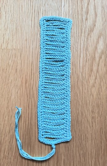Abmessungen: ca. 18 x 4 cm (variiert je nach verwendetem Garn und Nadelstärke)