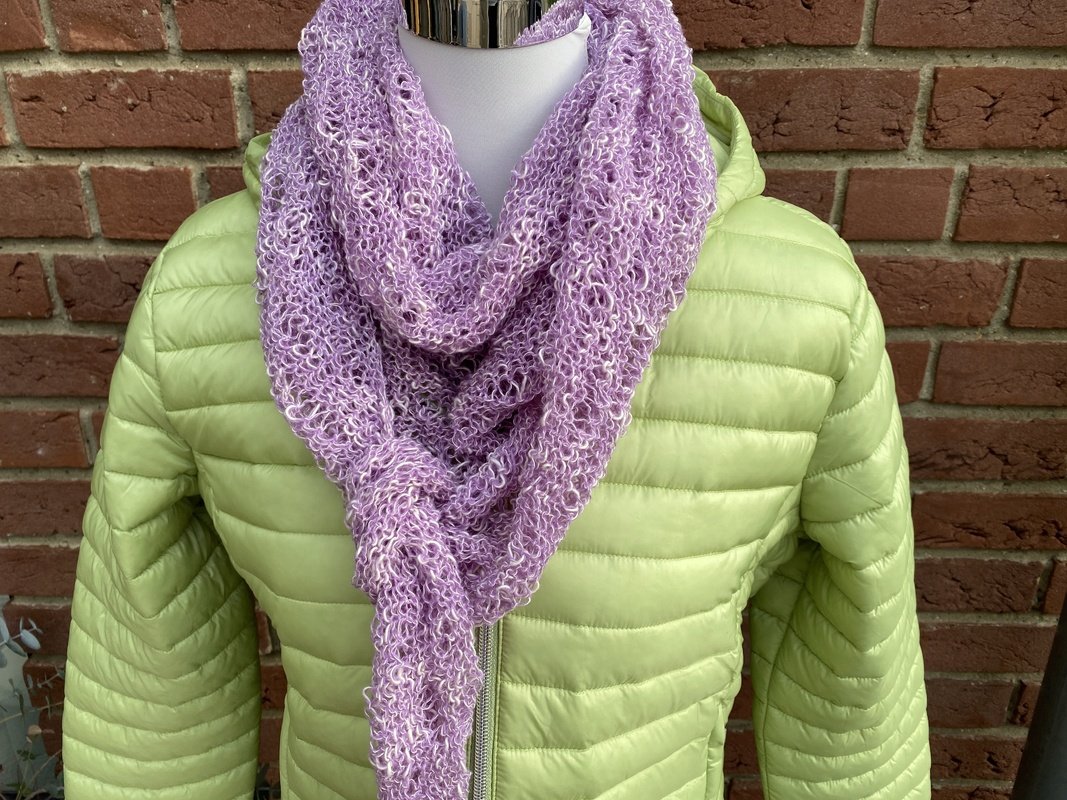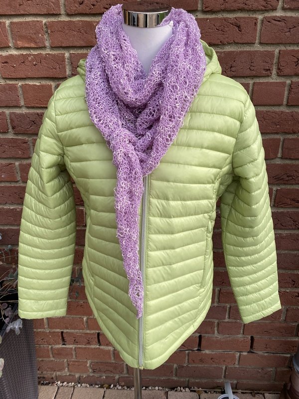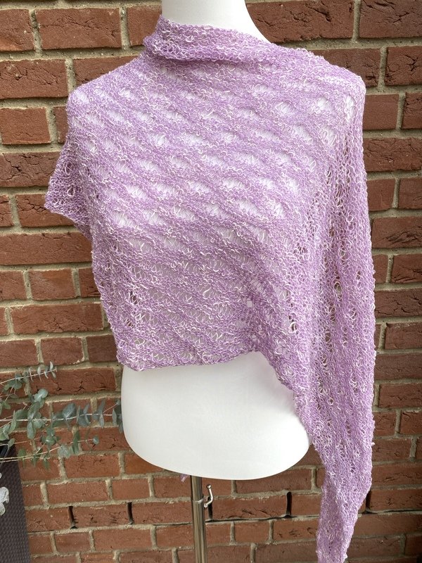Aus nur 3 Knäulen kann man dieses leichte (75g) Frühlingstuch stricken.