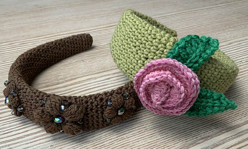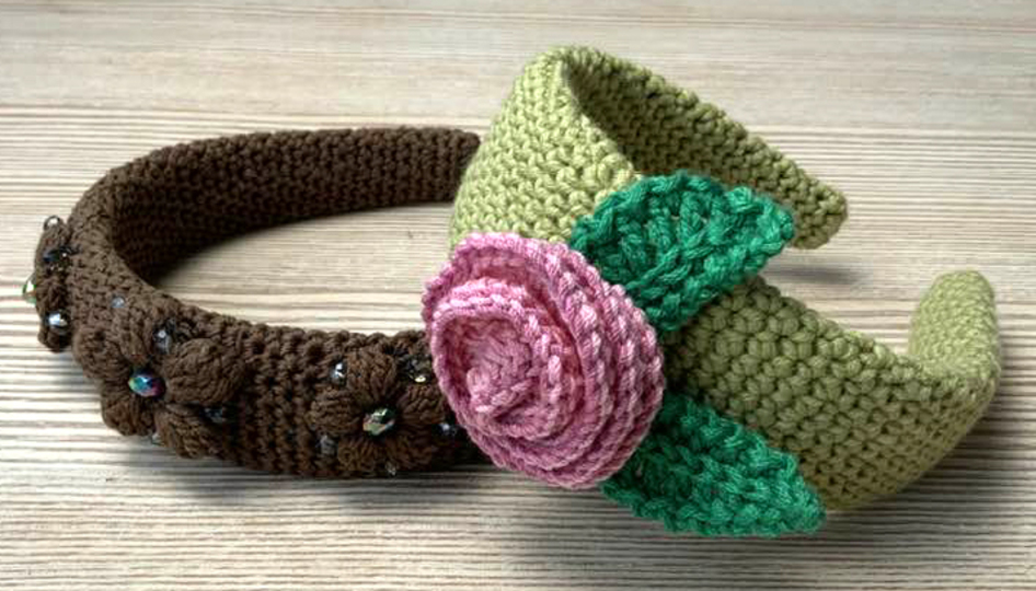 Auch viele Farbkombinationen sind bei dem Gehäkelten Haarreif möglich!