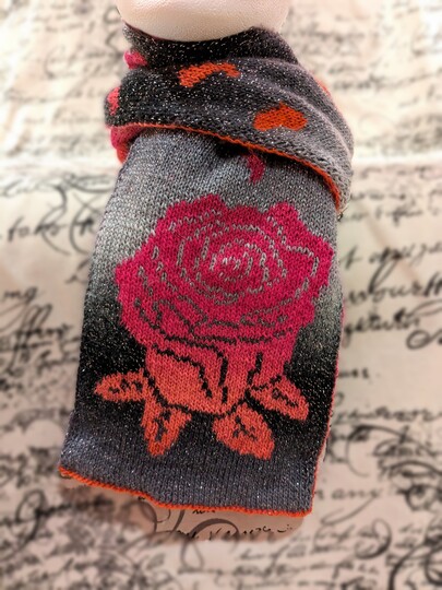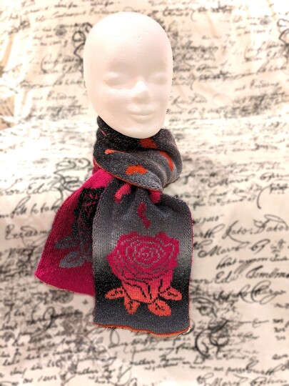 Die Rose ist eine ganz besondere Blume, die nicht nur ein Symbol für Liebe darstellt, sondern auch mit ihrem Duft betören kann und eine wichtige Rolle in vielen Geschichten spielt. Auch auf diesem Schal bekommt diese edle Blüte die Star-Rolle und darf ihre schönen Blütenblätter tanzen lassen!