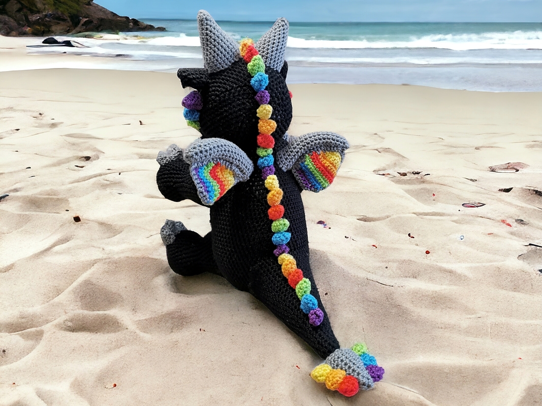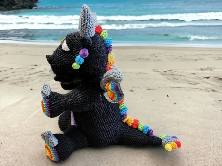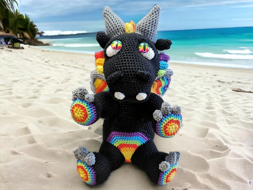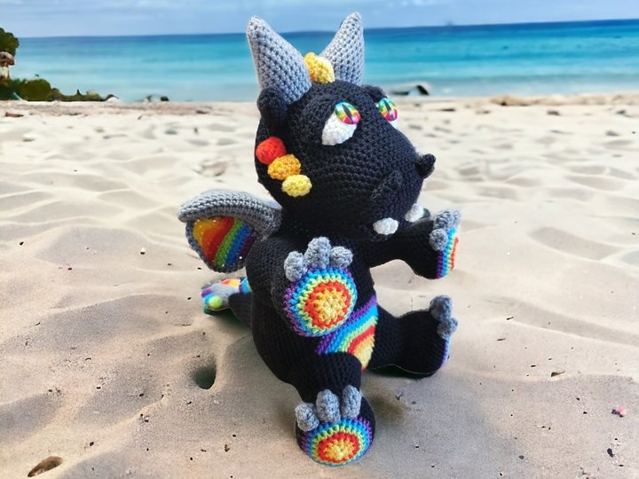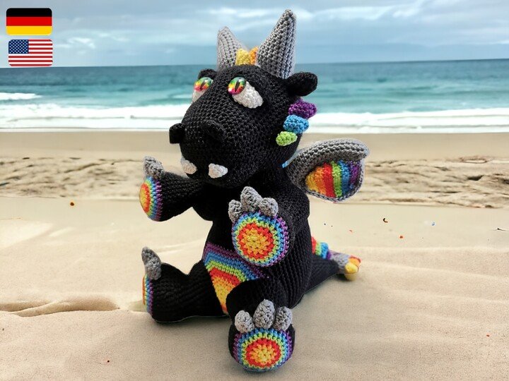 Häkelanleitung Akiro der Drache sitzend