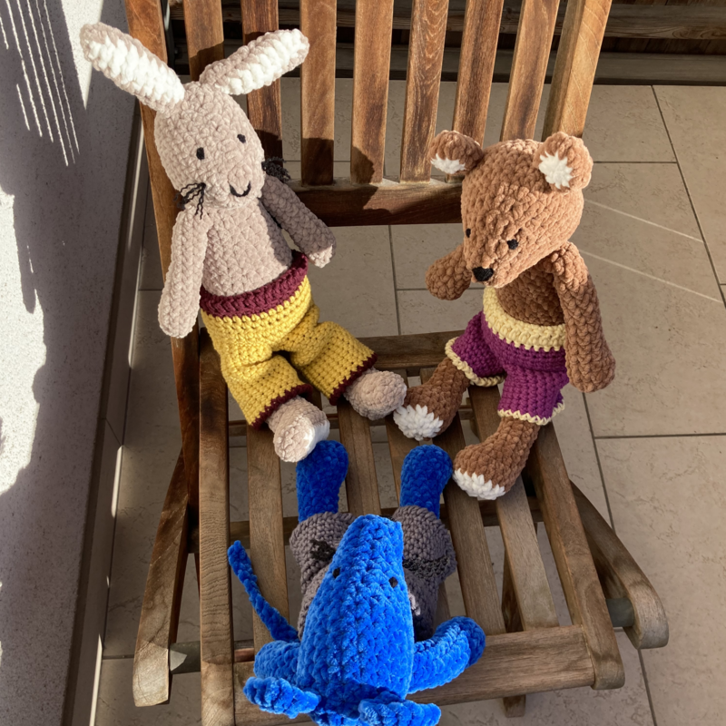 WICHTIG: In der Anleitung ist nur die Hose beschrieben. Die in den Bildern abgebildeten Häkeltiere sind nicht Teil der Anleitung!