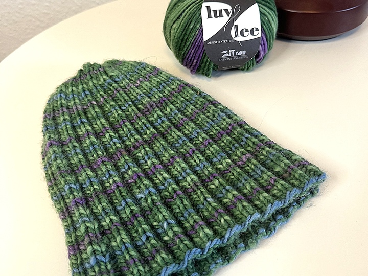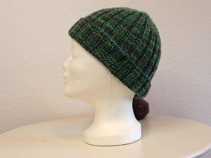 Durch das doppelte Rippenmuster passt sich die Mütze wunderbar dem Kopfumfang an.
