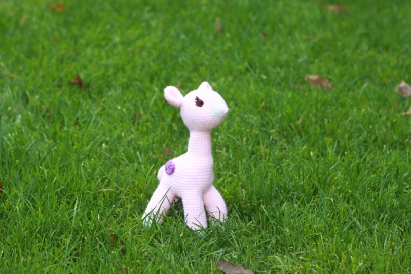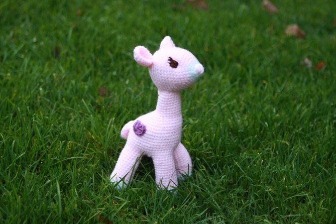 Das fertige Tierchen wird bei Verwendung von Schachenmayr Bravo und Nadelstärke 2,5 ca. 18 cm von Kopf bis Fuß.