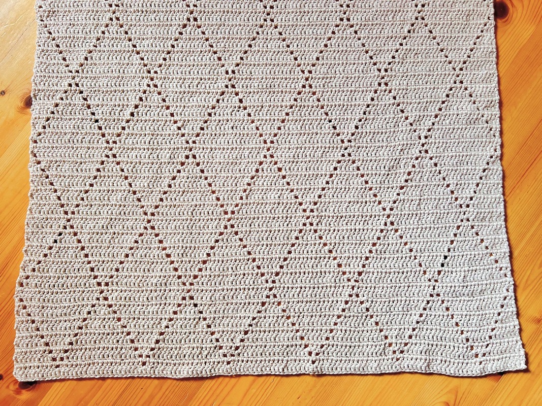 Die Anleitung beinhaltet eine Häkelgrafik sowie ausgeschriebene Anweisungen für jede Reihe.