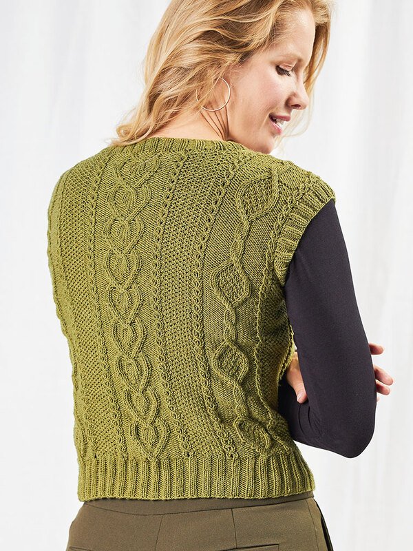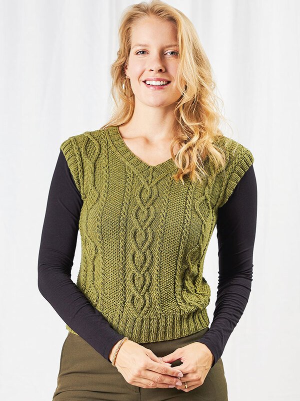Elegant und zeitlos: Stricke dir diesen wunderschönen Pullunder mit Zopf-Rauten-Muster!