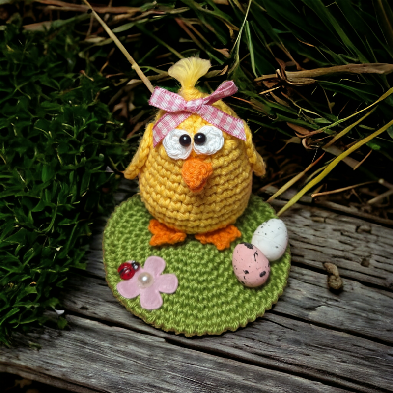 Diese süße Küken ist in zwei verschiedenen Varianten zu häkeln, ob sitzend oder als Kantenhocker :)