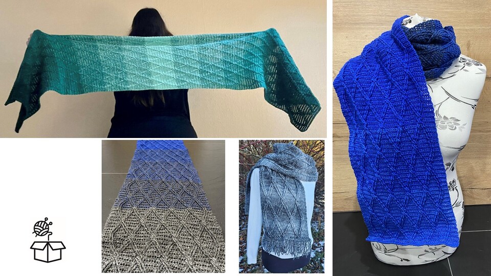 Der Schal kann in jeder beliebigen Länge und Breite gearbeitet werden.