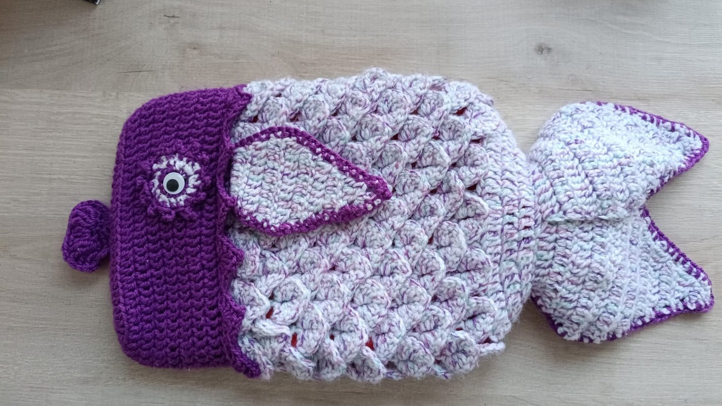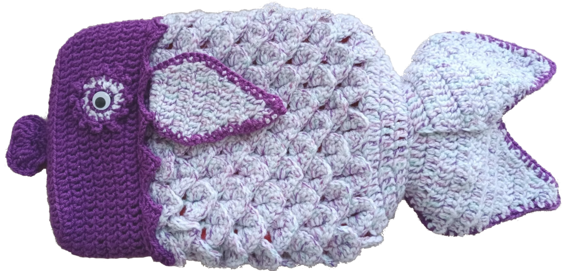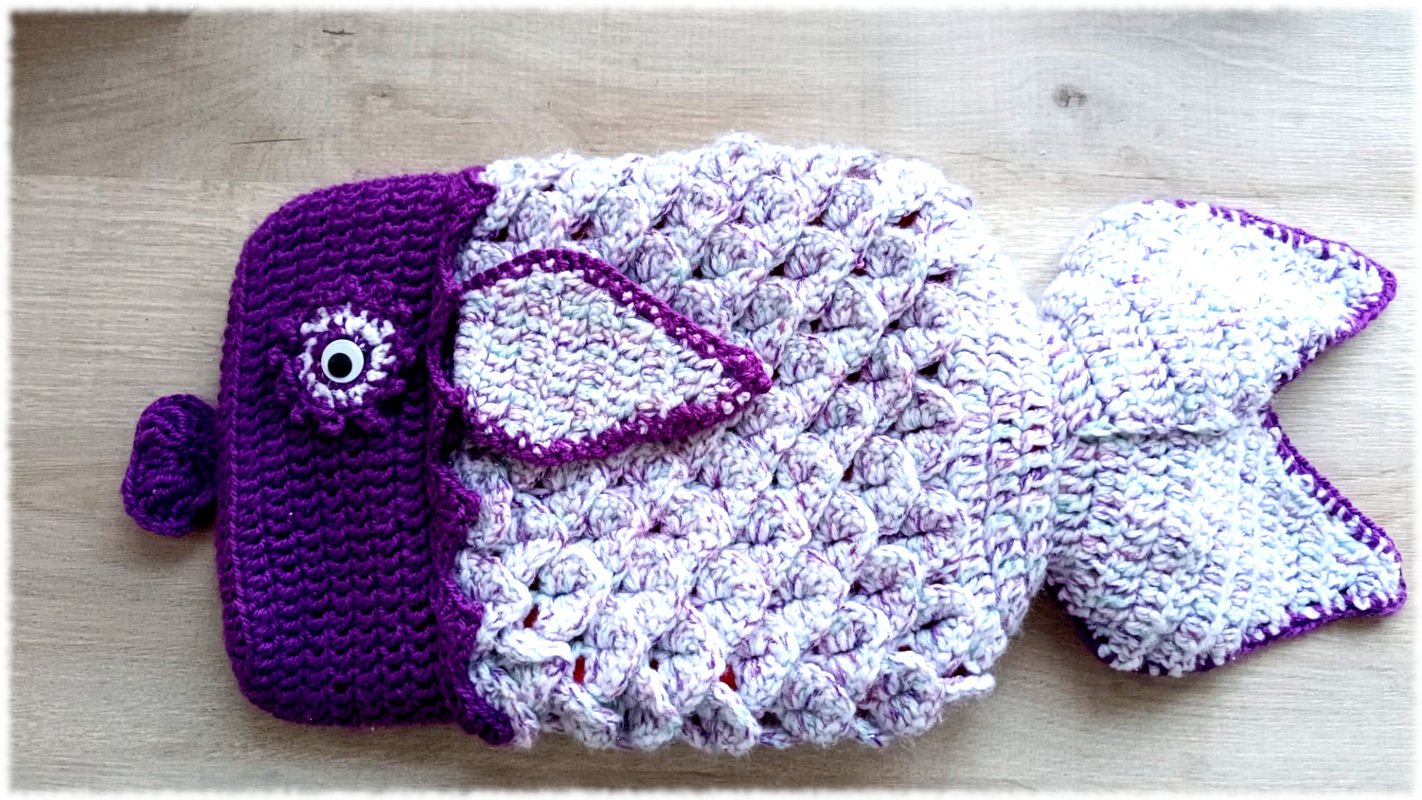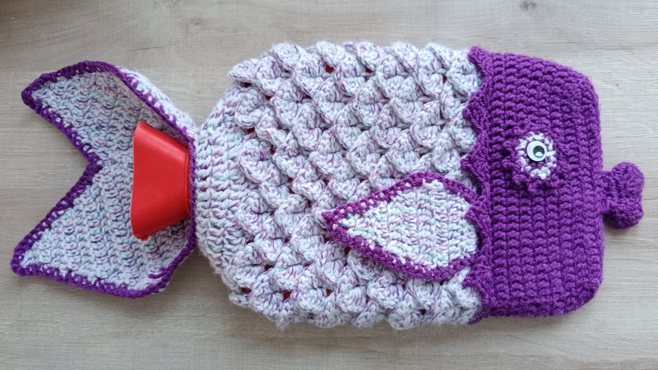 Anleitung für den gehäkelten Wärmflaschenüberzug Fisch "Kuschelmeer"
