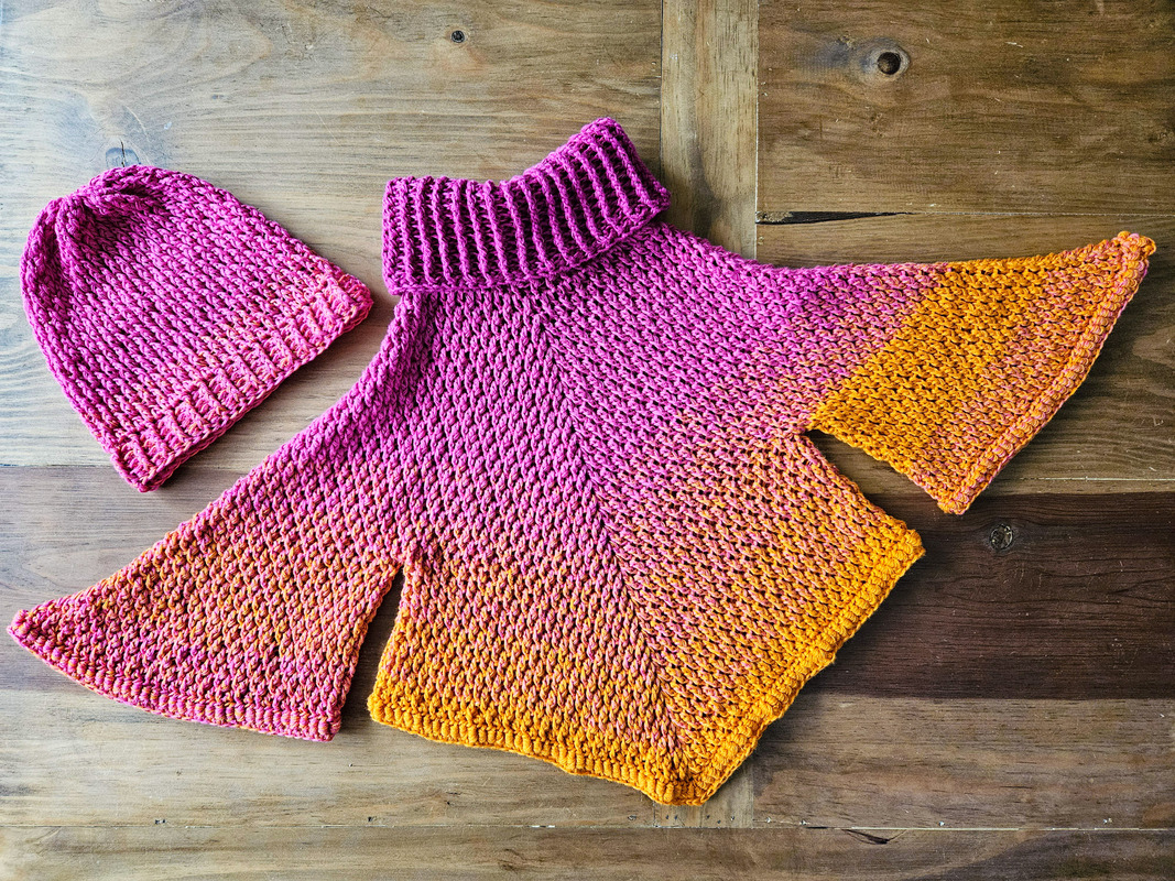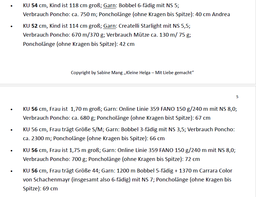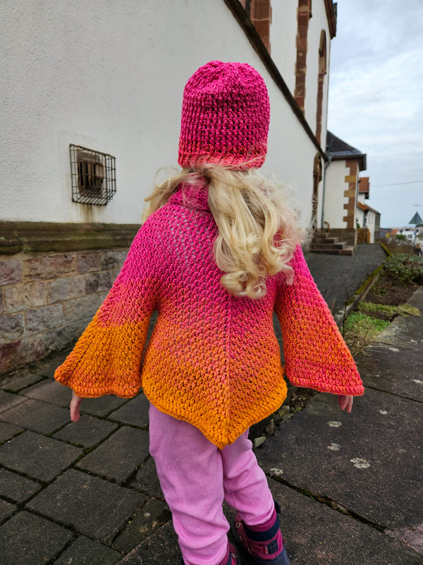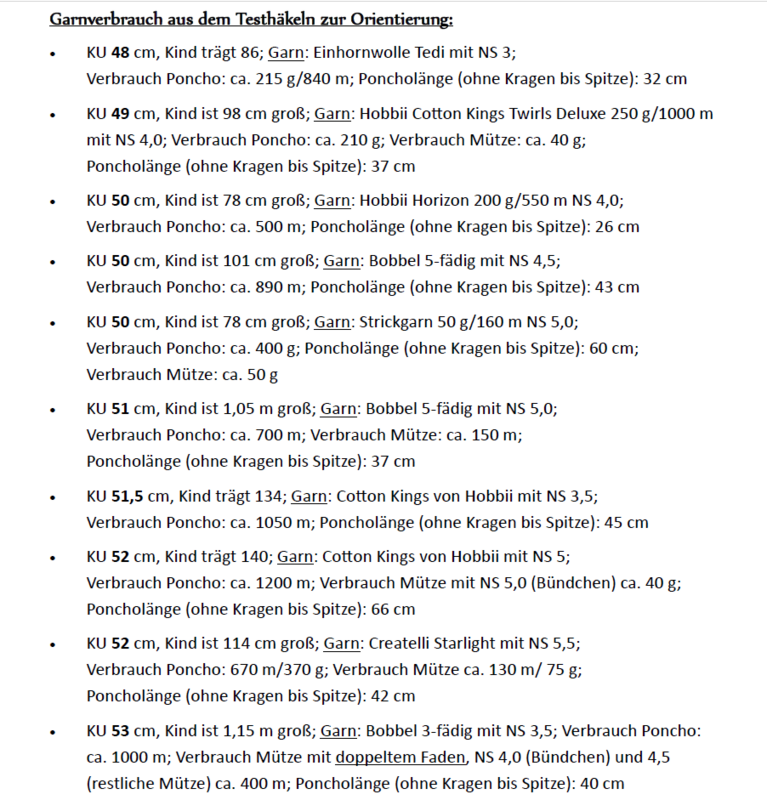 Der Poncho und die Mütze können in jeder beliebigen Größe nachgearbeitet werden.