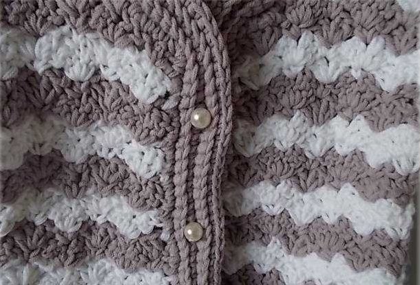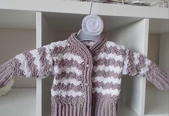 Die eine Jacke überzeugt durch ein schönes Muster ,die andere Jacke hat verspielte Details.Die Jacke mit dem Muschelmuster kann von 3 Monaten bis 3 Jahren gearbeitet werden.Das zweite Modell ist für alle Größen.