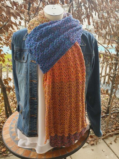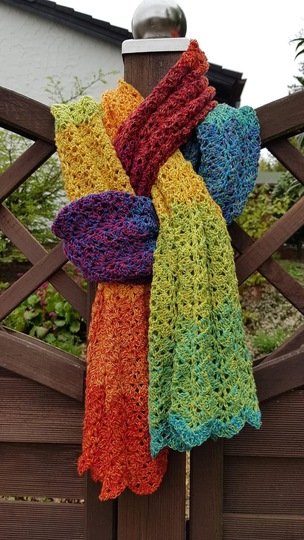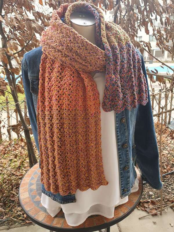 Du kannst Mad Jag mit beliebigem Garn häkeln. Die benötigte Garnmenge ist abhängig von der gewünschten Länge und Breite des Schals, dem gewählten Material und deinem persönlichen Häkelstil.