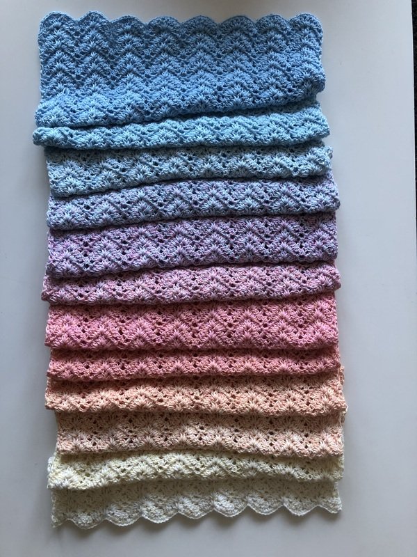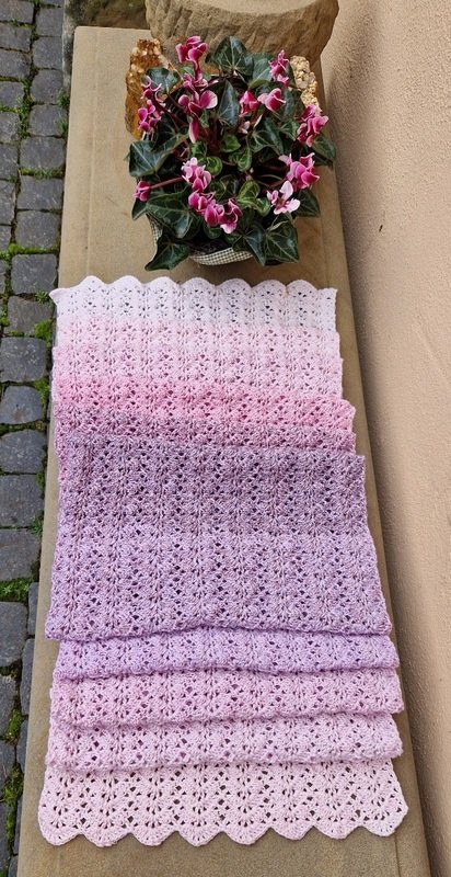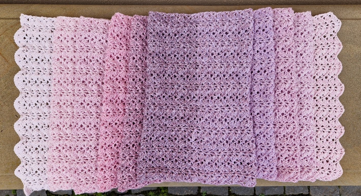 Eine übersichtliche Tabelle mit Richtwerten zu unterschiedlichen Lauflängen, Nadelstärken, und Endmaßen der Werke aus der Testhäkelgruppe ist in der Anleitung enthalten.
