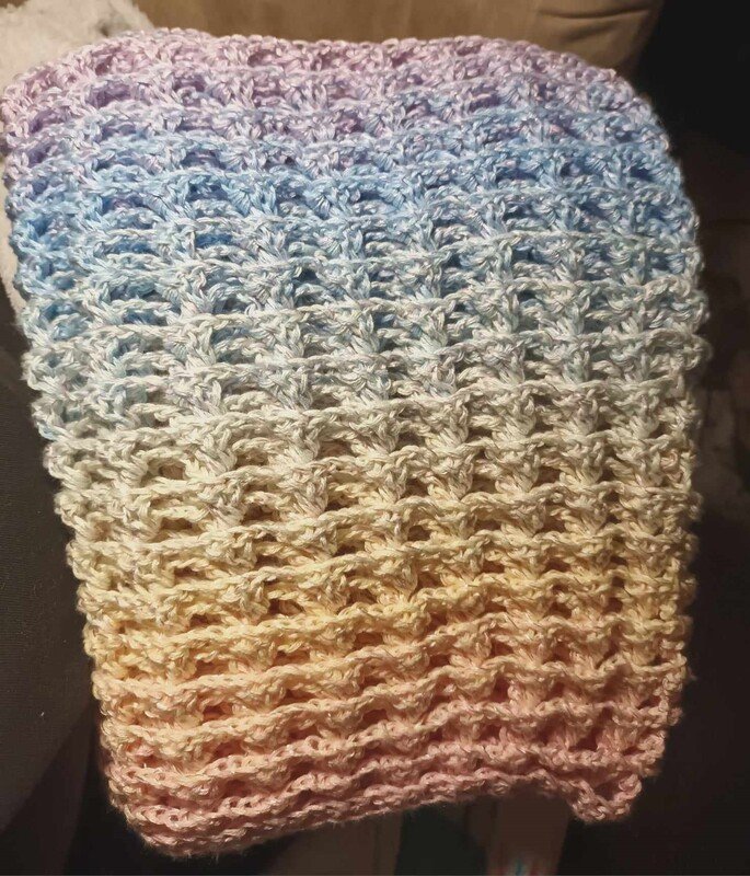 Der Loop/Schal ist für etwas fortgeschrittene Häkler geeignet, es kommen nur wenige Maschen vor:
