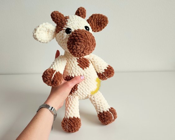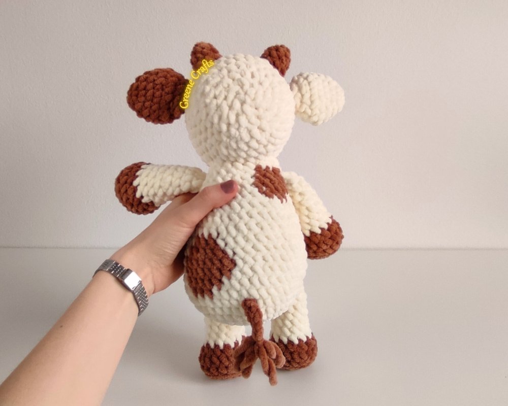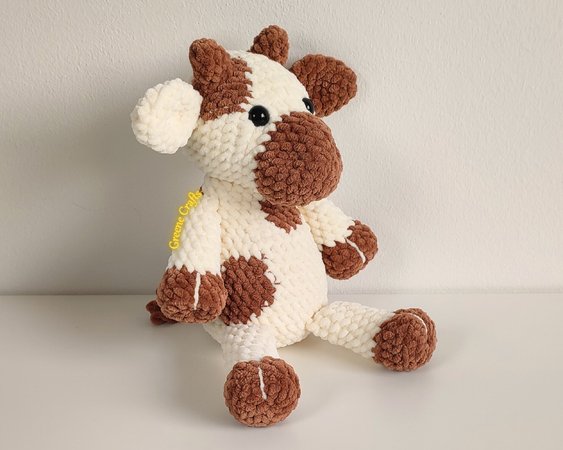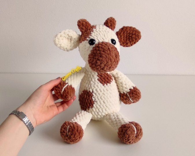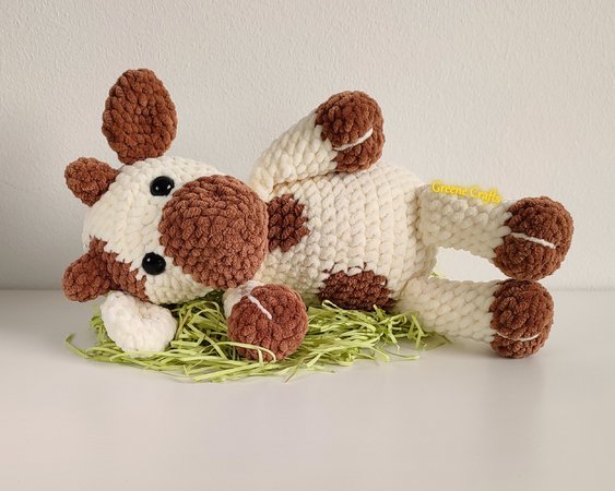 Dieses Muster enthält die schriftliche Anleitung für Schneeglöckchen, die gehäkelte Plüschkuh.