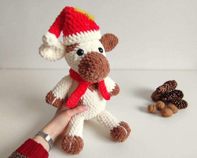 Darf ich vorstellen: Schneeglöckchen, die niedliche gefleckte Kuh! Sie ist eine kuschelige Freundin und das perfekte Geschenk für Familie, Freunde oder alle, die Plüschtiere lieben. Dies ist ein leicht verständliches Plüschmuster mit wenig Nähaufwand und vielen hilfreichen Schritt-für-Schritt-Fotos. Im Winter kannst du sie mit einer Nikolausmütze und einem Schal ausstatten – das Muster enthält auch eine Anleitung für diese saisonalen Accessoires.