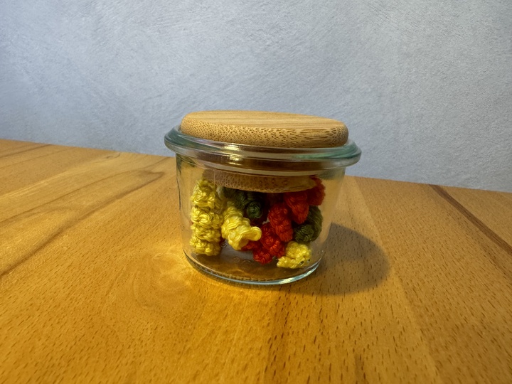 Fusilli (Spiralnudel) und Farfalle (Schleifchen-Nudel). Wollreste eignen sich besonders gut.