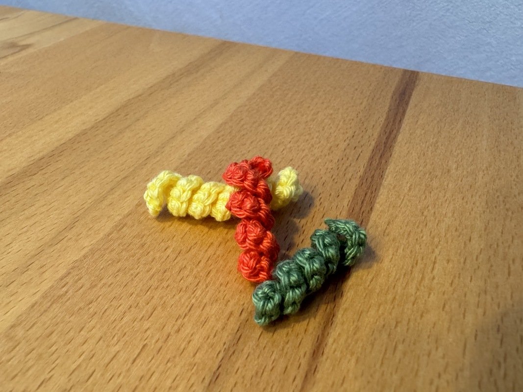 Spiralnudel: Dicke 1cm, Länge abhängig von der Anzahl der Luftmaschen