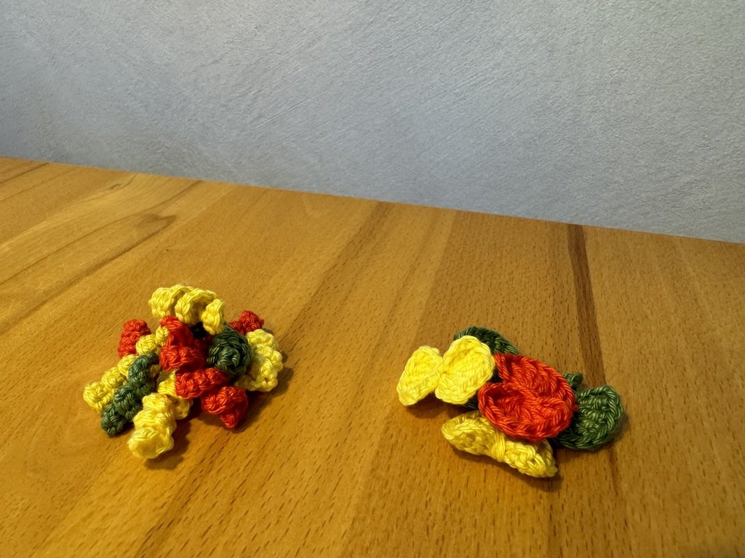 Siehe gern in den Bilder nach, hier liegen die fertige Häkelteile auf dem Maßband um einen Anhalt zu geben.
