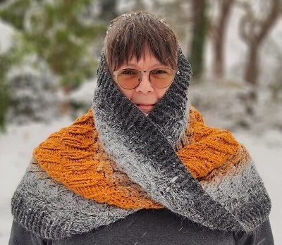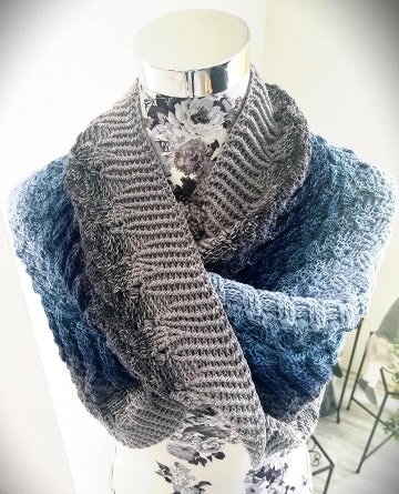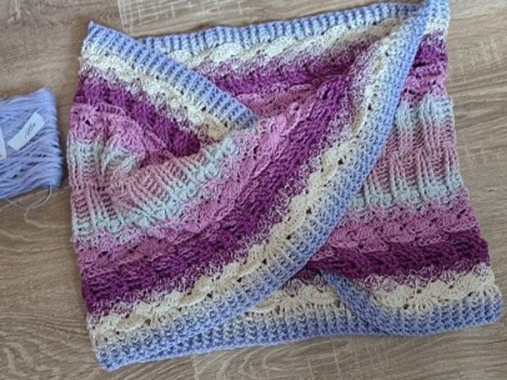 Als „Möbius“ wird eine Fläche, in unserem Falle ein Schal, bezeichnet, der von innen nach außen in einer „unendlichen“ Schleife gehäkelt wird.